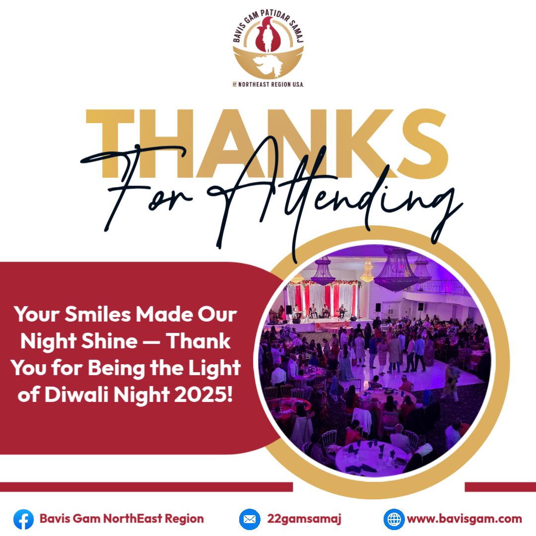 Shree Bavis Gam Patidar Samaj (USA) (Samaj) is a social cultural organization with its roots in India and comprising of 22 Gams (villages). Samaj means a Society and Shree Bavis Gam Patidar Samaj (USA) (Samaj) originally comprising of just nine Gams was formed in 1902 and the current set up (less few Gams) was formed in 1930. The formation of such Samaji's are equivalent to today's networking groups.